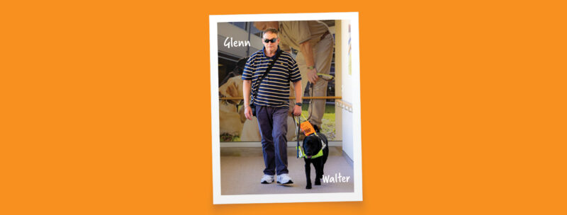 Today, with his second Guide Dog, Walter at his side, Glenn has taken advantage of new technology and tools and built a busy, fulfilling life, a wonderful family and more recently a new job.